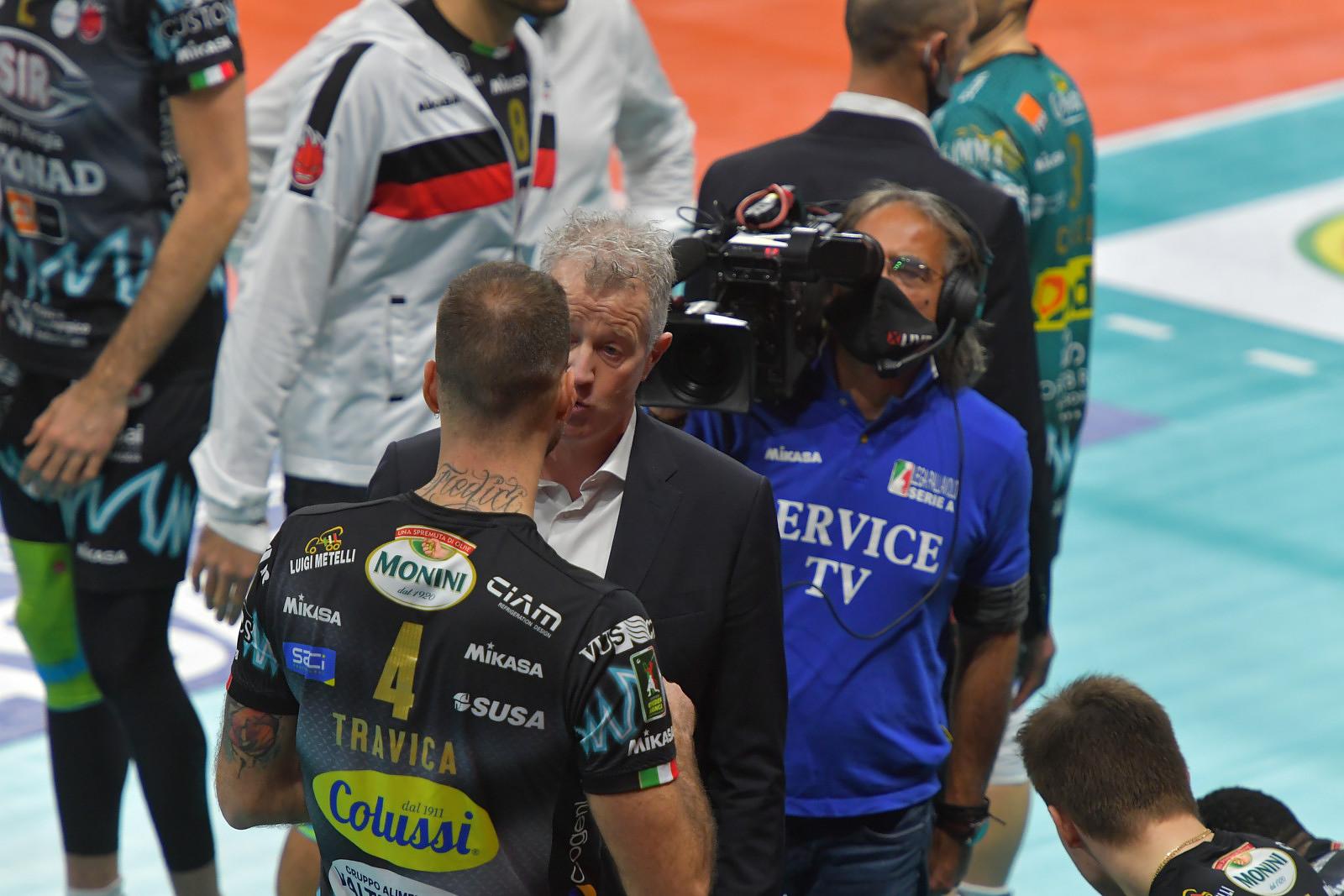 “L’anno non è cominciato certamente bene per noi. Già il primo giorno dell’anno con il problema fisico accusato da Atanasijevic. Abbiamo dovuto cercare di nuovo in poco tempo un’altra soluzione contro Trento, la squadra che oggi gioca la miglior pallavolo in Italia. Loro hanno dimostrato ieri tutta la bontà della loro battuta, noi, con ricezione staccata, abbiamo avuto problemi e non siamo riusciti a trovare soluzioni. Ha funzionato qualcosa nel secondo set e all’inizio del terzo, forse in quel frangente abbiamo perso il momento giusto, ma poi loro hanno giocato meglio di noi. Detto questo, io difendo sempre i miei giocatori. Dover cambiare il nostro sistema di gioco l’ultimo giorno non è mai una cosa buona e certamente questa situazione non ha giocato a nostro favore. Adesso spero soprattutto di ritrovare tutti i giocatori. Dopo il Covid abbiamo sempre avuto qualche problema fisico, non ricordo un giorno dove ho avuto a disposizione quattordici giocatori in allenamento, anche ieri ci mancavano due atleti (Atanasijevic e Russo, ndr) e chiaramente non abbiamo tante soluzioni e cambi a disposizione. La salute dei giocatori è fondamentale per poter lavorare bene in palestra e quindi spero a breve di poter avere la rosa al completo”.