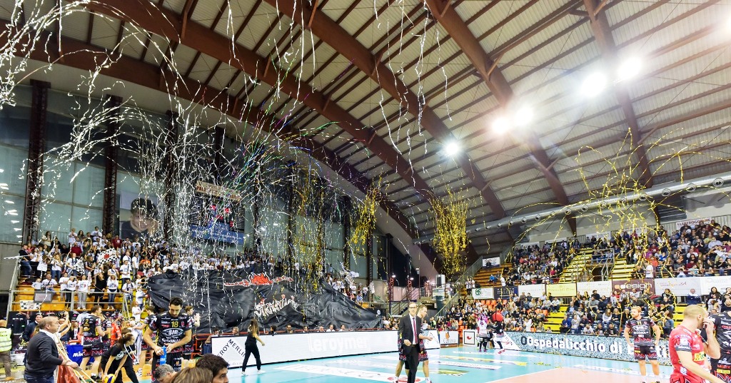 Smaltita la delusione per la sconfitta nel primo turno in casa contro Verona, i Block Devils si sono chiusi nelle quattro mura del PalaEvangelisti per crescere nel gioco e nei sincronismi di squadra e naturalmente per preparare al meglio il prossimo impegno di SuperLega che vedrà Perugia impegnata nella trasferta di Milano in casa della Revivre. Castellani alla ripresa degli allenamenti ha potuto contare su tutti gli effettivi, con Birarelli che ha svolto gran parte del lavoro tecnico e tattico con la squadra, e con l’eccezione di Luciano De Cecco, ai box per i postumi del problema accusato domenica contro Verona. Sembrano però molte le possibilità di vedere il regista argentino regolarmente in campo il primo novembre a Milano. Tanto lavoro tattico, tanto lavoro sugli schemi d’attacco, tanto lavoro sulla ricezione e sulla correlazione muro-difesa. Sono questi i piatti nel menù dei Block Devils in questa settimana. Chi certamente non si è perso d’animo dopo la sconfitta con Verona sono i Sirmaniaci. Il tifo organizzato bianconero domenica scorsa al PalaEvangelisti ha assicurato il consueto apporto di entusiasmo e folclore da bordo campo, incitando senza soluzione di continuità i propri beniamini e tributando loro, nonostante lo 0-3 decretato dal campo, l’applauso finale. E sono già una settantina ad oggi i supporters che saliranno domenica fino in Lombardia per essere a fianco dei Block Devils per la seconda di campionato. Lo faranno con il solito stuolo di bandierine e bandieroni, di tamburi e striscioni, di sana passione e piacere di stare insieme. Un alleato fondamentale per capitan Buti e compagni, un supporto che si è sempre contraddistinto per correttezza e che porterà un bel po’ di bianconero anche al PalaBorsani di Castellanza, casa della Revivre Milano.