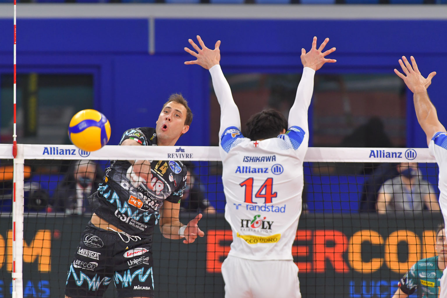 SIR SAFETY CONAD PERUGIA: Travica-Atanasijevic, Ricci-Solè, Leon-Plotnytskyi, Colaci libero. All. Heynen.