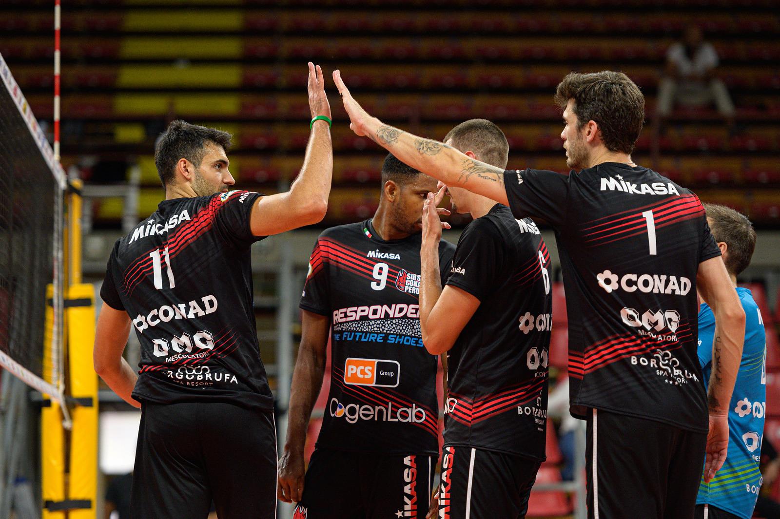 SIR SAFETY CONAD PERUGIA: Giannelli-Rychlicki, Solè-Mengozzi, Anderson-Leon, Colaci (L). All.: Grbic
