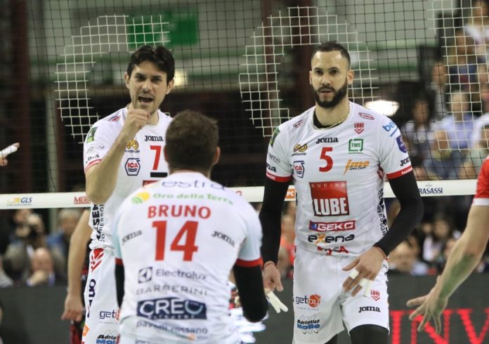 CUCINE LUBE CIVITANOVA: Bruno 5, Juantorena 16, Simon 16, Sokolov 19, Leal 15, Cester, D’Hulst, Cantagalli, Balaso (L), Kovar 3, Diamantini 5. N.e.: Stankovic, Massari, Marchisio (L2). All.: De Giorgi