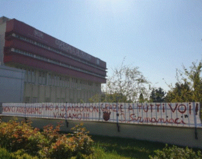 “Non ci arrendiamo fino a quando non vinciamo! Grazie a tutti!” – recita lo striscione.