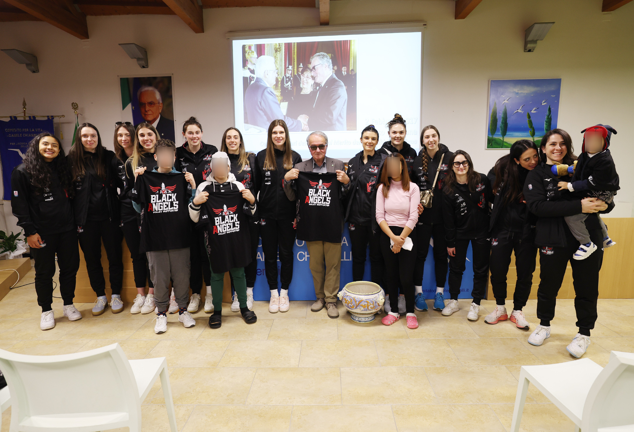 Una giornata diversa per le ragazze della Bartoccini MC Restauri che, dopo il consueto allenamento, nel pomeriggio di mercoledì 26 marzo, hanno fatto visita al Residence Chianelli e al reparto di Oncoematologia Pediatrica dell’Ospedale Santa Maria della Misericordia di Perugia. Un’esperienza toccante alla quale le Black Angels hanno partecipato con grande trasporto. Oltre alla squadra, erano presenti il tecnico Andrea Giovi, il suo assistente Guido Marangi, la responsabile marketing Alice Merli, il team manager Cristian Borgioni, la social media manager Chiara Cruciani e l’assistente fisioterapista Mattia Iacchettini. A fare gli onori di casa il Presidente Franco Chianelli che ha raccontato alla delegazione della Bartoccini MC Restauri la storia del Comitato, poi è arrivato il momento della visita presso le camere dei bambini ricoverati presso la struttura. Le Black Angels hanno regalato alcune maglie ai piccoli pazienti per poi intrattenersi con loro tra chiacchiere e sorrisi. Il capitano Imma Sirressi, che ha già visitato il Residence Chianelli nelle stagioni precedenti, racconta così l’incontro: