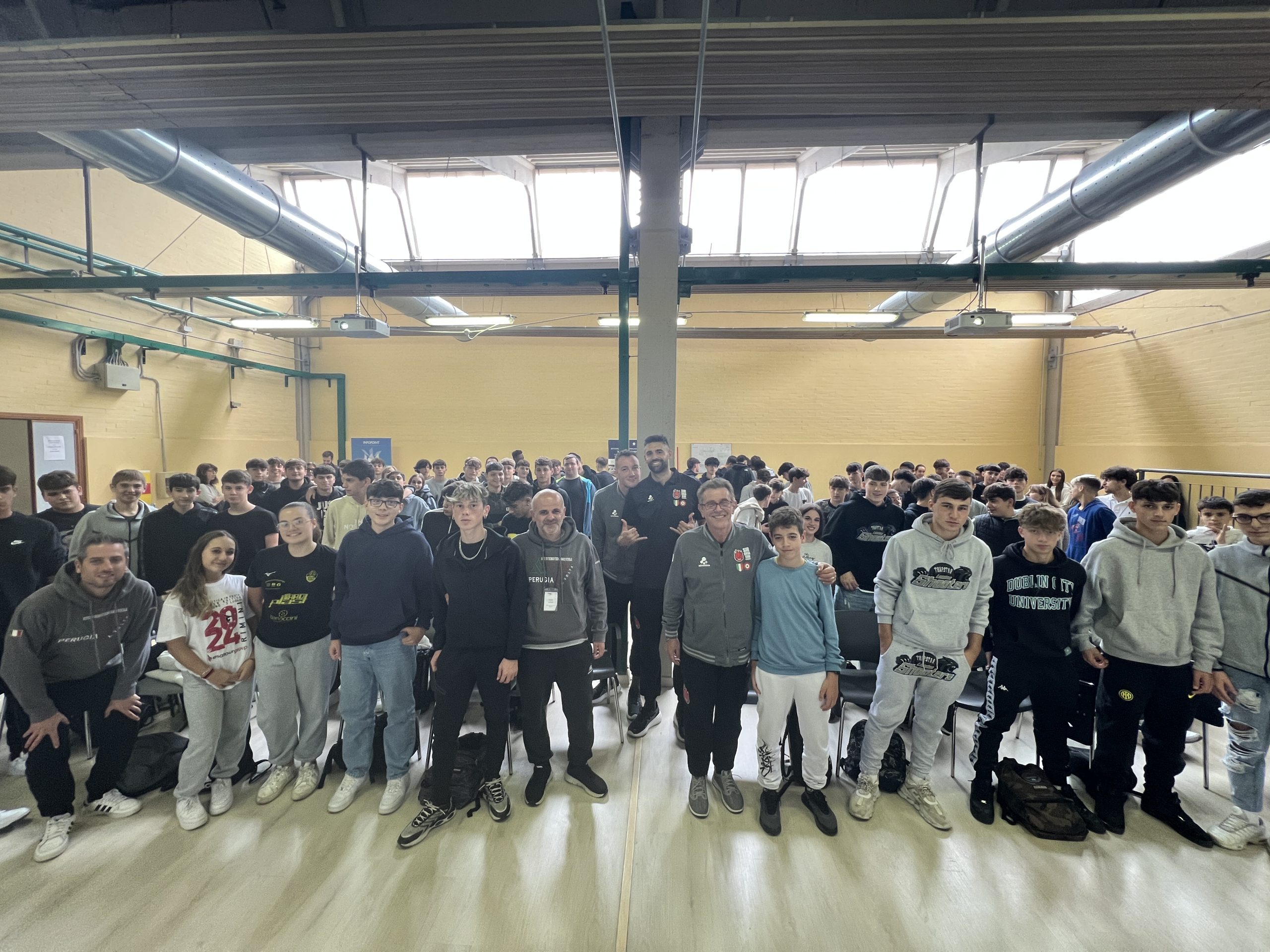 Block Devils “docenti per un giorno”! Dopo il successo dello scorso anno, si è svolto questa mattina il primo incontro dell’anno accademico 2024-2025 del progetto “La Sir a scuola”, che ha coinvolto, in questo primo appuntamento, i ragazzi delle classi, dal I al V dell’indirizzo grafico con flessibilità sportiva dell’ITIS Alessandro Volta di Perugia.