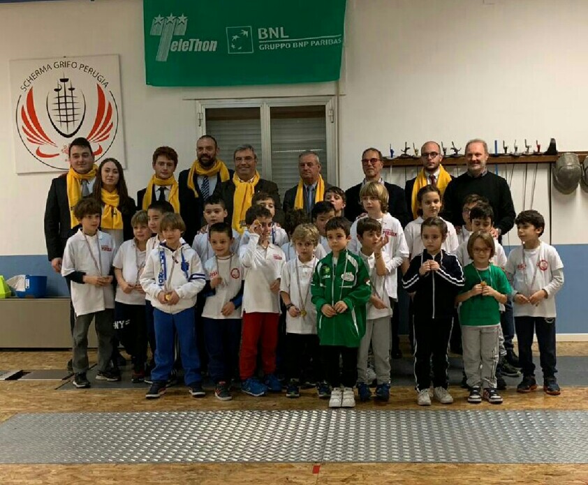 Alla manifestazione sono intervenuti Giovanni Marella, presidente regionale della Federazione Italiana Scherma, Domenico Ignozza, presidente regionale del Coni e Paolo Gallina, referente BNL/Telethon. Quest’ultimo ha ricordato la storia di Telethon e la collaborazione con BNL per la raccolta fondi oltre a sottolineare l’importanza della ricerca incentrata, in particolare, sulle malattie rare e gravi che colpiscono i bambini. Il presidente del Coni oltre a ringraziare per l’organizzazione e l’accoglienza il presidente del Scherma Grifo Perugia Luca Allegrucci, ha sottolineato, parlando in particolare ai più piccoli, la bellezza e importanza della disciplina della scherma sia come disciplina sportiva più medagliata d’Italia sia come percorso di formazione e crescita delle persone, ricordando come il rispetto delle regole e dell’avversario siano alla base della scherma e della crescita di ogni individuo e della società. Il presidente regionale della Federazione Italiana Scherma ha espresso la sua soddisfazione per la riuscita della due giorni ed ha auspicato per il futuro il proseguimento e l’ampliamento dell’evento.