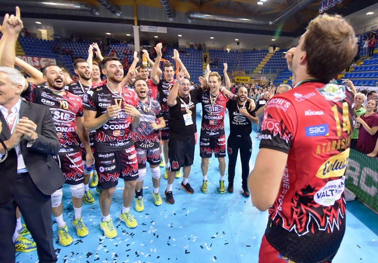 Ce la siamo conquistata questa coppa! -, spiega capitan Luciano De Cecco. – Sono onorato di portare la fascettina, ma soprattutto sono felice per questo gruppo. Al tempo stesso non cambio il mio modo di vedere la stagione per cui godiamoci un paio di giorni questo trofeo. Se lo goda soprattutto tutta Perugia ma poi torniamo in palestra motivati e a testa bassa perché questa vittoria non deve cambiare la nostra mentalità e la nostra consapevolezza da qui in avanti. I tifosi in festa? È il loro momento, hanno atteso tanto ed ora è giusto che facciano festa.