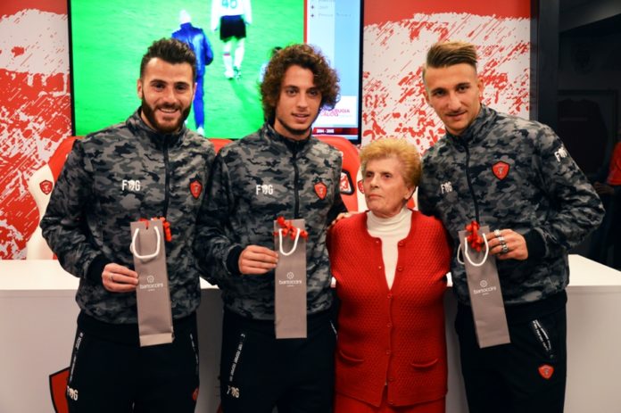 Jacopo Dezi, Gianluca Di Chiara e Francesco Nicastro. Sono stati loro i migliori grifoni in campo rispettivamente per le partite Perugia-Carpi, Vicenza-Perugia e Perugia-Trapani, secondo i tifosi che li hanno votati sul sito web www.perugiaclub.com, del Centro coordinamento Perugia clubs, nell’ambito del ‘Trofeo miglior grifone Gioielleria Bartoccini’ giunto alla 17esima edizione. I premi di tappa, buoni acquisto da spendere nelle gioiellerie Bartoccini, sono stati consegnati ai calciatori biancorossi martedì 22 novembre nel Museo dell’Ac Perugia calcio, a Pian di Massiano. Omaggi anche per i tifosi che hanno espresso le loro preferenze. Si tratta di Simona Legumi e Sofia Codini del perugia club Aper 90 di Capocavallo, e Franca Fochini. L’evento è stato anche l’occasione per una riflessione sull’andamento della squadra allenata da Cristian Bucchi.
