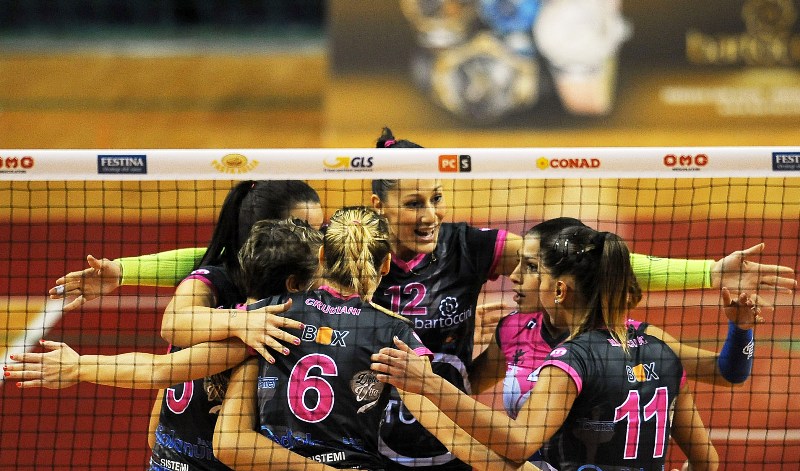 Altro turno positivo per la Tuum Perugia che chiude l’anno tra le mura amiche incassando una nuova affermazione, la settima in questo girone di serie B1 femminile che si conferma assai competitivo. Per la prima volta nella stagione le magliette nere portano a tre la striscia di vittorie consecutive e da ciò ne consegue che continua la risalita verso le zone nobili con il balzo nella quarta piazza della classifica ad una sola lunghezza dalla zona play-off. Le padrone di casa si sono meritate i tre punti giocando su buoni livelli e riuscendo a superare una Emilbronzo Montale Rangone che ha regalato pochissimo e che si è dimostrata squadra di rango con diversi elementi di ottima qualità. Grande soddisfazione per le ragazze del presidente Patiti che dopo aver accusato qualche passaggio a vuoto sembrano ora cominciare a carburare nella maniera ideale e, quel che più conta, aver intrapreso la strada della continuità. In questa occasione a meritarsi la palma di migliore in campo è stata la centrale Valentina Mearini premiata col trofeo Centova Cafè in virtù di un rendimento complessivo che ha avuto il 67% in attacco a cui vanno aggiunti un ace e due muri. Al fischio d’inizio la formazione perugina che scende in campo è quella delle ultime settimane, mentre le emiliane cambiano qualcosa e con Fronza provano a sorprendere (5-6). La ricezione comandata da Chiavatti gira bene (76%) e Baruffi imposta bene l’attacco che non riesce però ad incidere più di tanto (29%) a causa dell’ottima difesa ospite. Si avanza pertanto a braccetto con le squadre che si alternano al comando, sul 21-19 sembra fatta ma tre punti di fila propiziati da Marc rovesciano. La risposta di capitan Cruciani è pronta e allo sprint Perugia incassa il vantaggio. La ripresa è in salita con Scalabrini che a rete si fa sentire andando a colpire cinque volte in maniera letale (7-12). Le perugine si riorganizzano e, facendo leva su di un muro che diventa impenetrabile (sette punti nella frazione), piazzano l’accelerazione decisiva con Puchaczewski e Cruciani che propiziano un break di sei a zero (19-16). Si continua a lottare e Mascherini impatta ma il finale è tutto per le umbre che raddoppiano. Nella terza frazione è sempre battaglia, le locali compensano ai numerosi errori (saranno nove) con una superlativa Catena (nove volte a segno) e riescono così a mantenere il comando fino al 14-12. Le ospiti non si danno per vinte e con la concretezza di Fronza riescono a rovesciare procurandosi due palle set (22-24). È Mearini a infilare la tripletta che annulla le possibilità alle montalesi e Puchaczewski appone la firma il calce sulla gara.