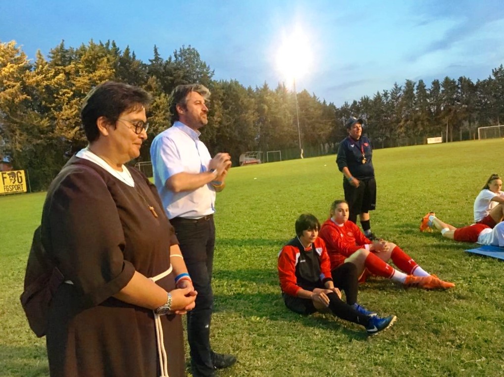 Suor Roberta, francescana diocesana, teologa moralista, preside dell’Istituto Superiore di Scienze Religiose di Assisi, da sempre impegnata nell’opera pastorale in mezzo ai giovani, ha poi parlato alle giocatrici.
