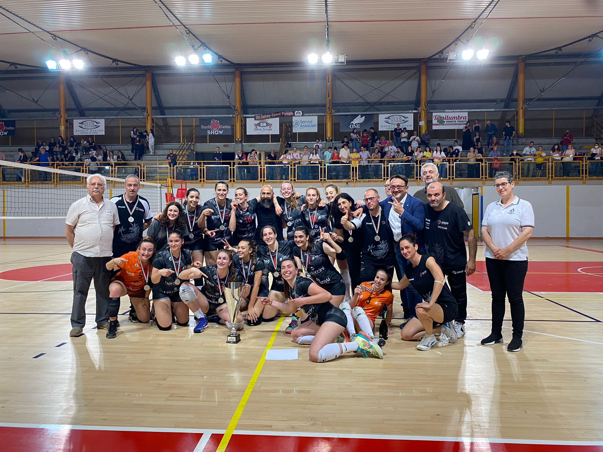 La Bartoccini Perugia conquista il titolo regionale nella categoria under 18. La squadra di Roberto Farinelli ha superato nella finale disputata a Santa Maria degli Angeli (domenica 15 maggio) le pari età di Trevi. Una finale degna di due squadre che nella stagione hanno dimostrato di avere dei valori sul piano individuale e del gioco e che si erano già affrontate nella finale del ‘cartellone gold’. Come nella doppia sfida di qualche settimana fa anche questa volta ha vinto la Bartoccini, perché ha saputo interpretare meglio la partita, anche se nel primo set le perugine sono partite un po’ contratte. Trovato comunque il vantaggio (25-22), le ragazze di Farinelli hanno gestito i restanti due parziali con maggiore serenità, chiudendo la pratica con un netto 3-0 (25-19, 25-14).