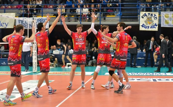 SIR SAFETY CONAD PERUGIA: De Cecco 3, Atanasijevic 21, Birarelli 6, Buti 6, Russell 15, Kaliberda 7, Giovi (libero), Tzioumakas, Fanuli, Holt. N.E.: Dimitrov, Elia, Franceschini. All. Fontana, vice all. Carloncelli.